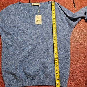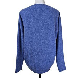 Liny Xin Womens V-Neck Superfine Merino Wool Sweater Sz M Blue Academia Preppy