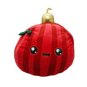 Linzy Christmas Ornament Plush Red Striped Gold Green Holly Smile Face 13"