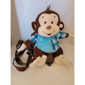 Linzy Toys Kids' Blue Brown Monkey Plush Stuffed Animal Leash Backpack Medium