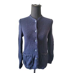 Liola Blue Tight Knit Long Sleeve Button Down Cardigan Size 44 (10) Vintage