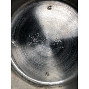 3 Footed Serving Dishes, 2 are marked Lion Bentley Stainless Steel, One is unsigned with a plastic base but looks similar so including it in the set. Overall excellent vintage condition, no dings, some light scratches on lid from use.