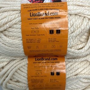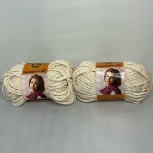 2 skeins of Lion Brand Hometown USA yarn in the color Houston Cream.