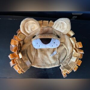 Cozy lion costume onesie with a playful mane. Features tan and white colors.