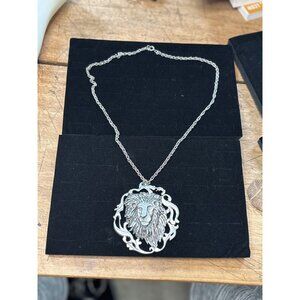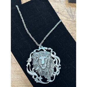 This lion head pendant necklace features a bold and intricately detailed design in silver-tone metal, showcasing craftsmanship and unique artistry.