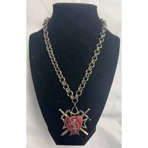 Add to your collection Lion Shield Pendant Necklace Vtg Red Crest Crossed Swords
