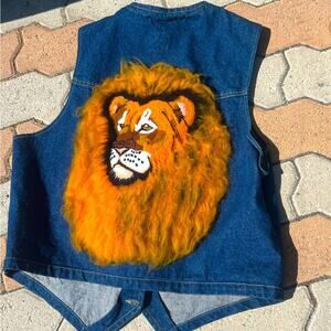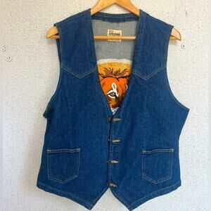 Lion embroidered denim vest Ely Cattleman vintage unisex XL unique western boho