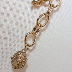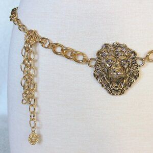Gorgeous Roaring Lion of Judah Belt is fun fashion and a bold statement! Belt is goldtone with a small lion at the end of the extension. 44" length total. Weight is 6 oz.