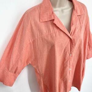 Lion of Porches Cotton Linen Half Sleeve Shirt Womens Sz M Half Sleeve Orange