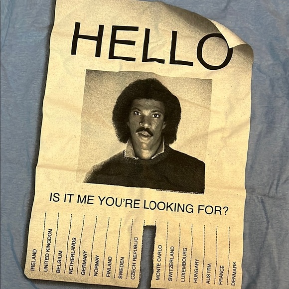Lionel Richie "Hello Is It Me You're Looking For"2012 Tour T-Shirt Light Blue Size M. Perfect for casual wear.