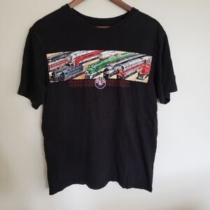 Black tee with Multicolor Train Graphic design