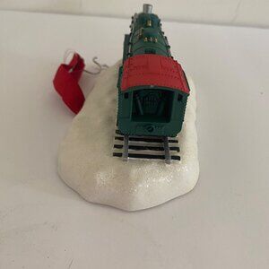 This vintage 2008 Lionel train ornament evokes nostalgic charm, perfect for collectors or enthusiasts. Features detailed craftsmanship and a festive ribbon hanger.