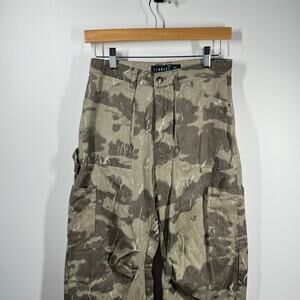 Lioness Barrel Pants Women XXS Green Camouflage High Waist Wide Leg Utility