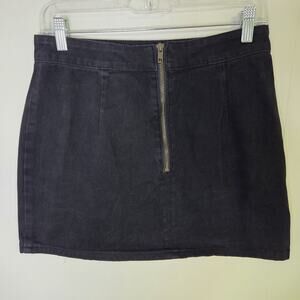 Lioness Black Denim Mini Skirt With Front Slit Zip Up Back Size Medium