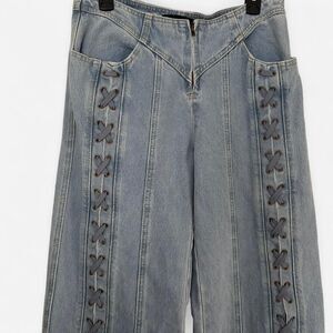 Lioness Daydream Lace-Up Grommet Jeans – Light Wash Y2K Statement Denim (Size Medium)