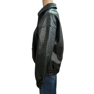 Lioness Kenny Woven Faux Leather Bomber Jacket XXS Black Oversized Grunge Casual