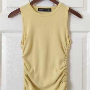 Lioness Military Minds Knit Sleeveless Side Ruched Mini Dress Mellow Yellow M