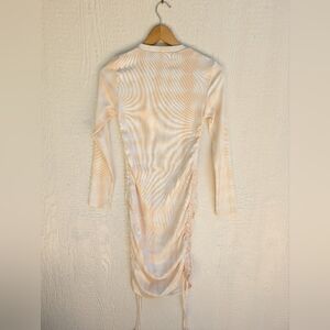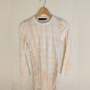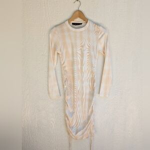 Lioness Military Minds Long Sleeve Mini Dress Ecru Tie Dye Ruched Size Medium