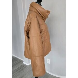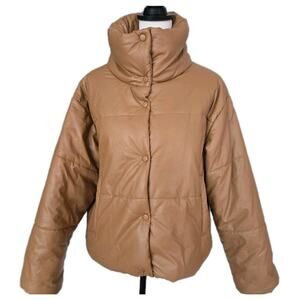 Lioness Puffer Quilted Caramel Brown Color Faux Leather Jacket Sz XS