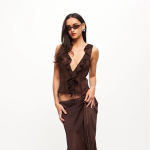 Lioness ROSE RUFFLE TOP | CHOCOLATE C17