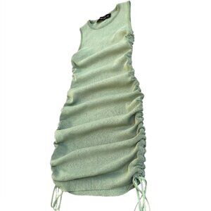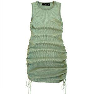 Lioness Sage Olive Green Ribbed Knit Ruched Mini Dress Bodycon Sleeveless Small