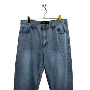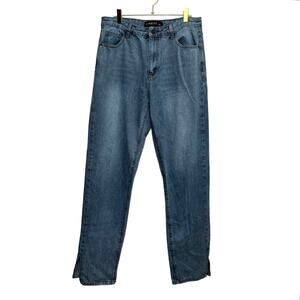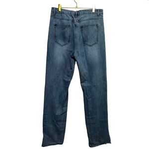 Gently pre-loved Lioness Side Slit Straight Leg Jeans in size Large. Very good condition. Model measures 30" waist, 41" hips, 5'4" height. 100% cotton. Measurements when flat: