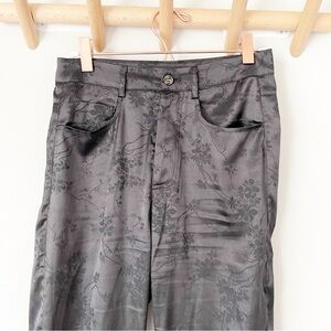 Lioness St. Germain Black Satin Floral Embossed Pants
