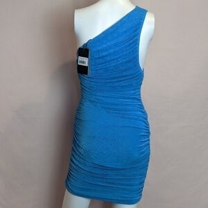 Lioness Super Stretchy Ruched The Goddess Mini Dress in Blue size XXS US 0