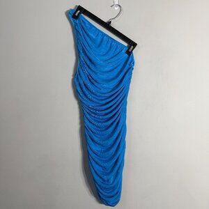 Lioness The Goddess One Shoulder Ruched Mini Dress Womens XS Blue Cocktail Party