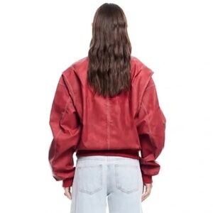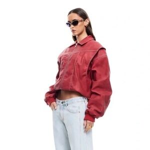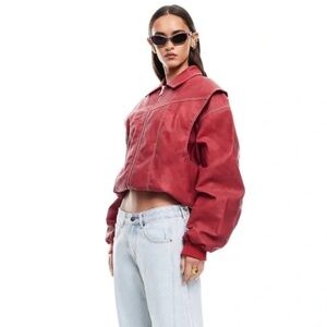 PRODUCT FEATURES MAKE A STATEMENT IN THE VISTA BOMBER. Vista Bomber Features: ITEM RUNS TRUE TO SIZE Oversized Zip front Contrast coloured stitching Elasticated cuffs and hem 55% PU 45% POLYESTER Model wears size S and is 177cm
