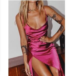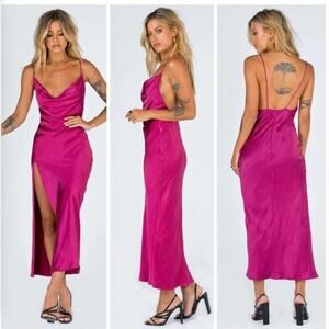 Lioness Walk the Line Magenta Pink Satin Midi Dress