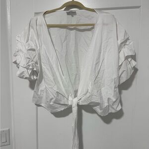 Keywords: Lioness, White, Blouse, Top, Ruffle Sleeve, Tie Front, Cropped, Womens, XS, Extra Small, Contemporary, Fashion, Designer
