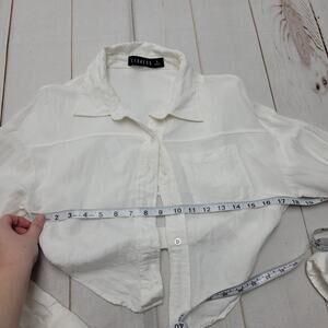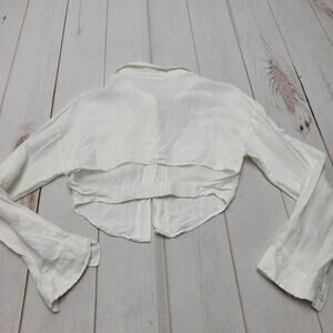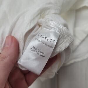 Cure Lioness linen blend top! Crop fit with elastic back detailing and a button front. Gently worn, size medium.