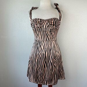 Love the print on this super fun dress by Lioness in excellent preowned condition. It measures 13 inches armpit to armpit laying flat and 36 inches in length from shoulder to hem.