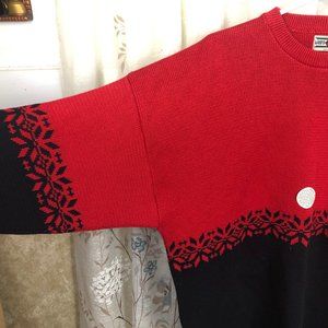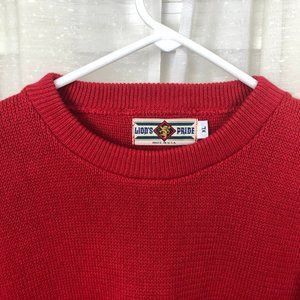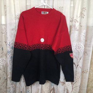 Vintage Lions Pride Sweater Nordic Snowflake patter with Amstel Beer Patch on the arm....Made In USA XL Red Black...still has sticker on front so looks to have not been worn....see measurements for correct fit 25" pit to pit and 30" center back length