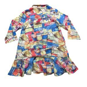 Lior Paris Medium Geo Donna Blouse Button up 3/4 Sleeve 100% Polyester