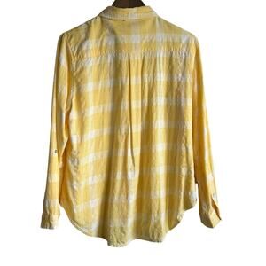 Lior Paris Women Top L Yellow Check Button Up Preppy Coastal Beach Office Travel