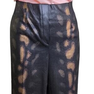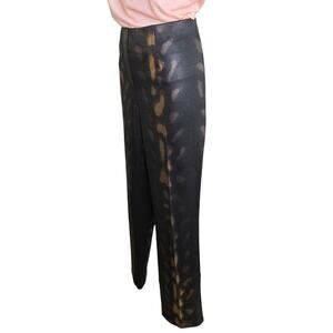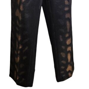 The pants are black with brown and caramel accents and have side slits at the cuffs.