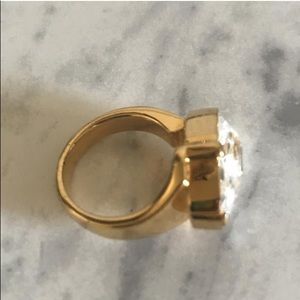 An eye-catching cocktail ring has the power to transform an outfit and the gold-plated metal Liora style is crafted to a chunky design and finished with a single clear Swarovski(R) crystal that will catch the light as you move. Oversized design Irregular crystal top feature