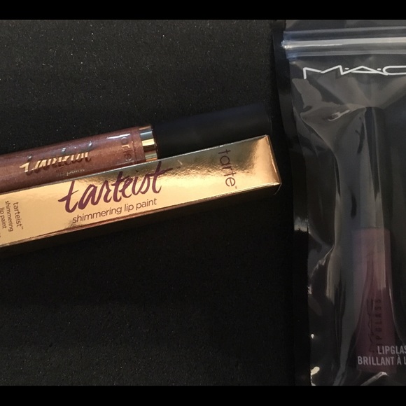 NIB Tarte Tartiest Shimmering Lip Paint in shade Strike Gold brand new in box, MAC lipglass not sure what shade I cannot find it but itβs brand new sealed in bag πππMake me an offer, or bundle for discount and or discounted shipping...π Thanks for stopping by πππ