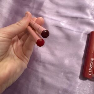 Enhance your look with this stunning lip set featuring Clinique and Ulta Beauty. The vibrant red shades offer a bold and captivating finish, perfect for any occasion.