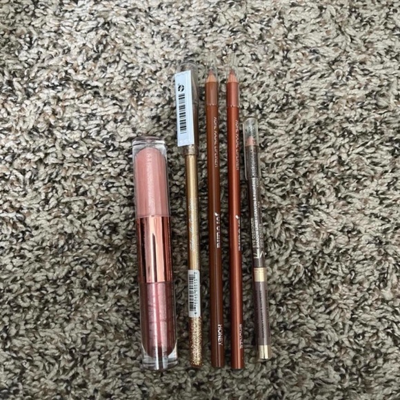 Lip & Eye makeup bundles. Comes with two lip liners, one liquid eyeshadow, and two eyeliners. These products have never been used or opened.