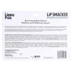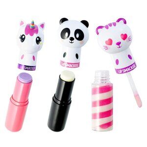The Lip Smacker Zoo is officially open and all your adorable animal lip balm friends are there! This 3-piece set features 2 lip balms in the form a magical unicorn and panda pal, as well as a swirl lip gloss in the form of a cuddly kitten. These sweet animal friends feature the even sweet flavors of Unicorn Magic, Cuddly Cream Puff, and Sweet Kiwi Kitty. A perfect gift for friends, family, or even to yourself, these lip balms soothe chapped lips while delivering terrifically tasty flavors that are lip smackin' good! Colorful and fun, this collection is perfect for boys, girls, and adults alike. Bring out your inner child with these sweet classic flavors. Not only do they moisturize and protect chapped lips, but they also leave a subtle gloss for added fun and fashion. With hundreds of flavors and themes, Lip Smackers products are fun to use and even more fun to collect. Explore the world of Lip Smacker and grow your collection! Welcome to the World of Lip Smacker: Explore flavor, color, and design and find the Lip Smacker that makes YOU smile. Since 1973, we have put smiles on lips around the globe. We hope our authentic flavors, scents, and colorfully designed products make you happy. We invite you to discover Our World, explore our brand, and find your favorites. The flavor combinations are endless — mix and match to find