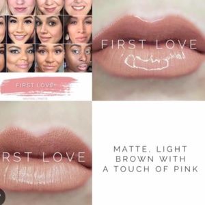 From LipSense comes this moisturizing , longlasting LipColor in First Love. It is a matte light brown with a touch of pink. A soft nude tone neutral lip color. All day smudgeproof, wear. Waterproof, non drying formula