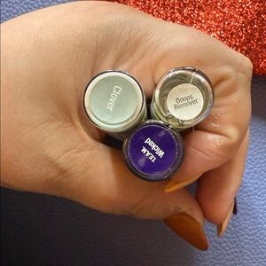 LipSense set with vibrant red glitter bag. Includes team wicked lip sense, clover gloss, and oops remover!