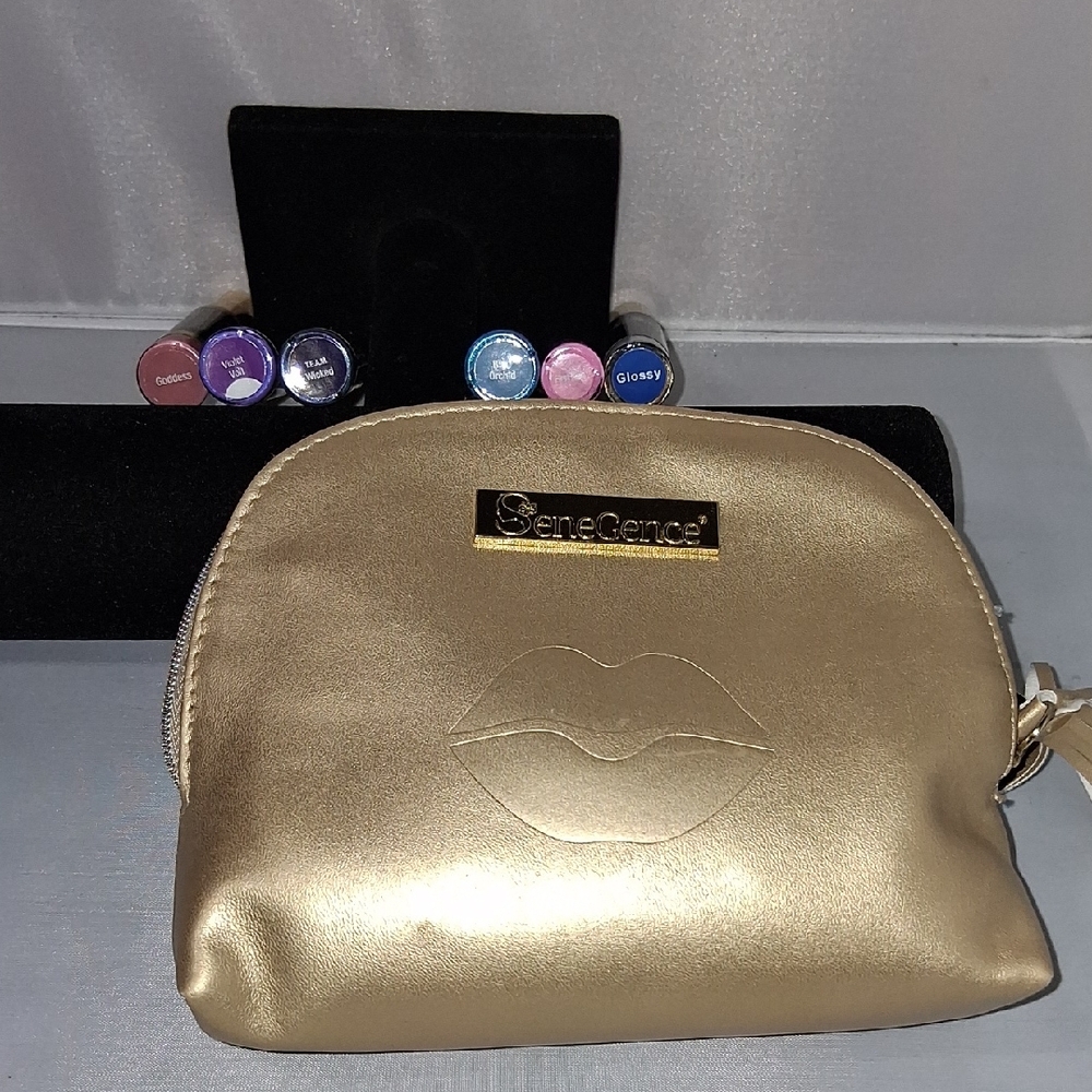 Unopened LipSense bundle. 3 long lasting liquid lip color: Goddess, Violet Volt, TEAM Wicked. 3 glosses: Blue Orchid, First Kiss, Glossy(clear). Reasonable offers welcome. Ships next business day in goldtone cosmetic pouch.