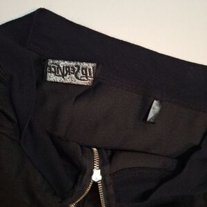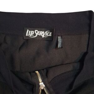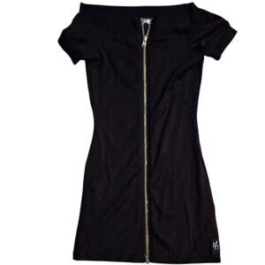 Chic black dress by Lip Service. Features a stylish zipper detail. zips down and up double zipper. this dress has stretch to it. tag is only half on and some slight damage to the very top of the dress but not super noticeable I tried to show in photos. otherwise on great condition for a vintage lip service piece. hope it finds a good home!