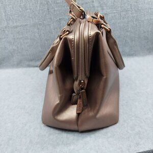 This Lipault Paris handbag offers both style and function with its metallic bronze sheen and versatile carrying options. The bag is equipped with double handles and an adjustable strap for diverse wearing styles. Its spacious interior is complemented by smooth zip closures, providing practicality and flair for your daily life.