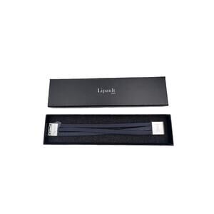 Lipault Paris Plume Elegance Clasp Bracelet Navy Leather 7" New in Box