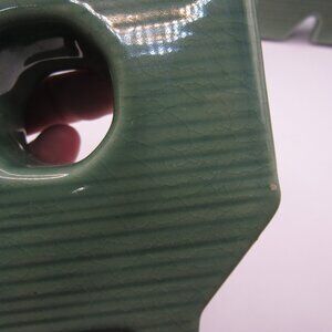 Four Piece Set, Vintage 1950's, Green NOEL Ceramic Letters Candlestick Holders, Holly leaves and berry pattern, Lipper & Mann stickers on the bottom of each letter, Holes on top to hold candles with two smaller holes on the back of each, you can thread a ribbon or a wire and hang them up. All letters are in great vintage condition with no visible cracks, breaks or chips, Some crazing throughout each letter which is to be expected for ceramics of this age. Each letter is approximately 4" tall x 3.75" wide x 1.25" depth.