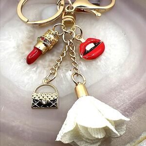 Lips, Lipstick, Purse and Flower Purse Charm Keychain - Adorable - NEW
